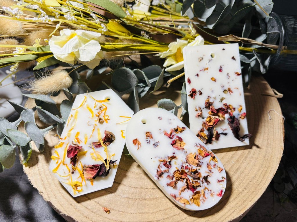 - Vonný vosk je vyroben ze sójového vosku a je doplněn o sušené květy. Je doplněn o esenci černá malina a pepř.